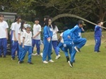 競技はドッヂボールに大きなフリスビーを入れたドッヂビーを行い、異学年を混ぜたチームに教育実習生も参加して大いに盛り上がりました。今後も異学年交流を意識的に実施していきます。